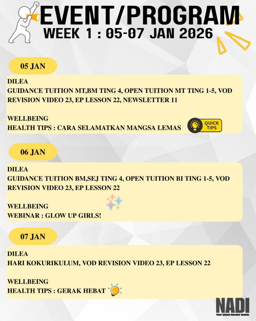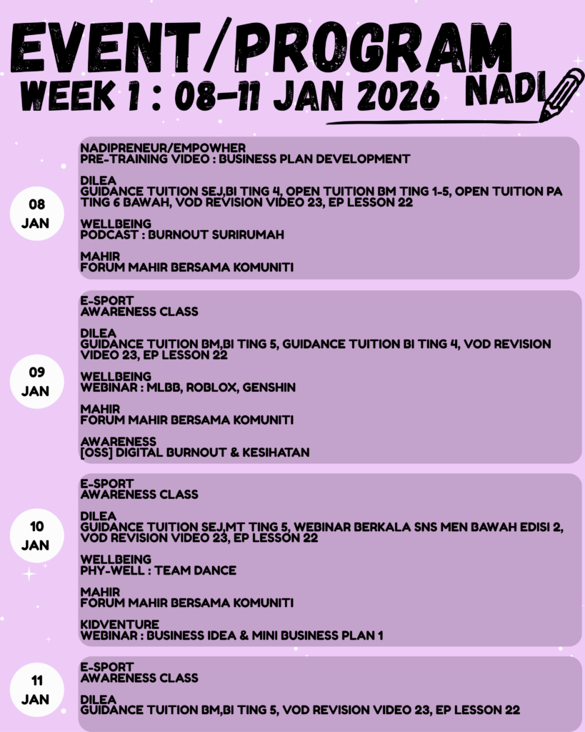 NADI Pedas dengan sukacitanya menjemput komuniti setempat untuk menyertai pelbagai program bermanfaat, berinformasi dan interaktif sepanjang minggu ini ๐กโจ