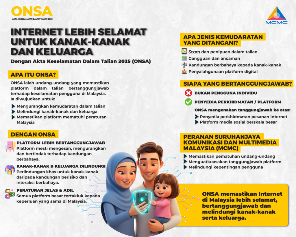 Seiring platform dalam talian menjadi sebahagian penting dalam kehidupan seharian, risiko seperti penipuan, penyalahgunaan dan kandungan berbahaya turut meningkat. ONSA digubal bagi mempromosi dan memperkukuh keselamatan dalam talian dengan mengawal selia kandungan berbahaya serta mengenakan tanggungjawab dan kewajipan ke atas pemberi perkhidmatan aplikasi berlesen (termasuk pemberi perkhidmatan pesanan Internet dan media sosial), pemberi perkhidmatan aplikasi kandungan berlesen, serta pemberi perkhidmatan rangkaian berlesen, selaras dengan undang-undang dan jangkaan kawal selia di Malaysia.