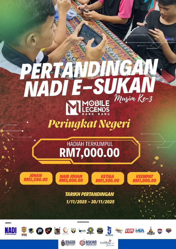 Seperti tajuk di atas, dimaklumkan bahawa Pertandingan NADI E-Sukan Mobile Legends Bang Bang (MLBB) Peringkat Negeri Musim Ketiga akan diadakan seperti ketetapan berikut: